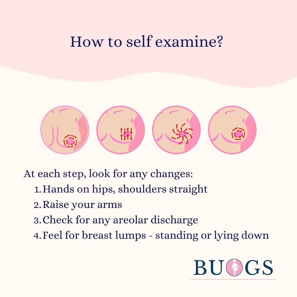 Check that are no changes in the usual shape, size, colour of the breasts